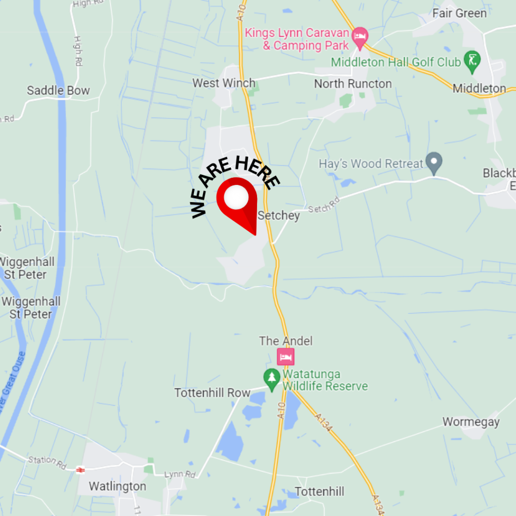We are located at Garage Lane, Setchey Norfolk, PE33 0BE. Along the A10, turn off at JSW Car Sales and you’ll find us on the right-hand side. Keep driving and park in our free car park where you can stay for as long as you require, meaning you can visit our whole site!