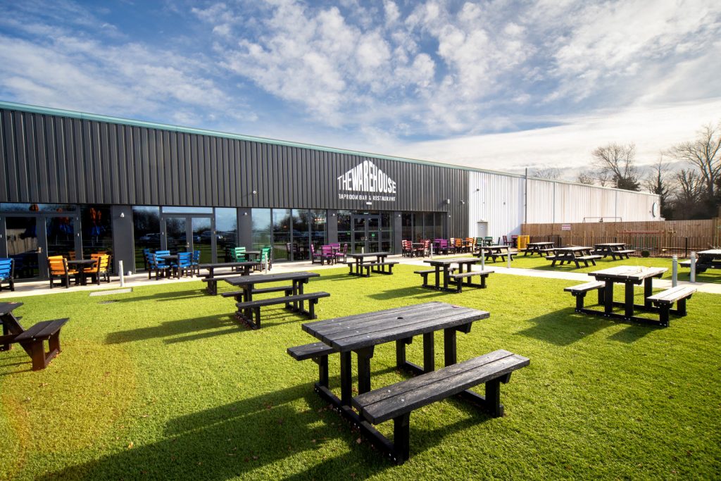 The Warehouse Taproom Bar and Restaurant has been recently converted from warehouse space to a sleek and modern purpose-built entertainment venue. Our beautiful glass entrance leads you through you to our custom-built bar. One side of the building boasts expansive floor to ceiling glass, filling the room with light and warmth throughout the year and doors take you out into a beautiful garden, with lots of space for outdoor events. The interior layout is warm and inviting, with plenty of comfortable seating, including plush sofas and bar stools.